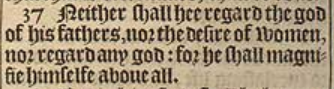 37 Neither shall hee regard the god of his fathers, nor the desire of women, nor regard any god: for he shall magnifie himselfe aboue all.