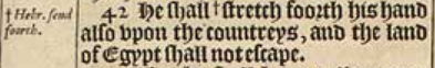 42 He shall +stretch foorth his hand also vpon the countreys, and the land of Egypt shall not escape. [ +Hebr. send foorth. ]