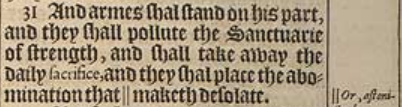 31 And armes shal stand on his part, and they shall pollute the Sanctuarie of strength, and shall take away the daily sacrifice, and they shal place the abomination that ||maketh desolate. [ || Or, astonisheth. ]
