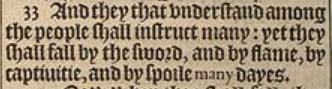 33 And they that vnderstand among the people shall instruct many: yet they shall fall by the sword, and by flame, by captiuitie, and by spoile many dayes.