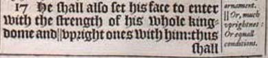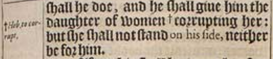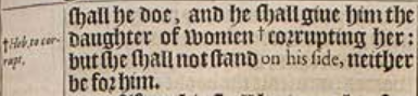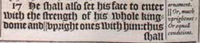 17He shall also set his face to enter with the strength of his whole kingdome and ||vpright ones with him: thus shall he doe, and he shall giue him the daughter of women +corrupting her: but she shall not stand on his side, neither be for him. [ || Or, much vprightnes: Or equall conditions. ,+Heb. to corrupt. ]