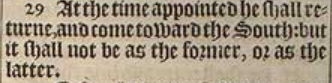 29 At the time appointed he shall returne, and come toward the South: but it shall not be as the former, or as the latter.