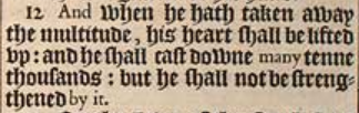 12 And when he hath taken away the multitude, his heart shall be lifted vp: and he shall cast downe many tenne thousands: but he shall not be strengthened by it.