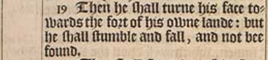 19 Then he shall turne his face towards the fort of his owne lande: but he shall stumble and fall, and not bee found.