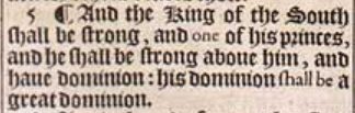 5 ¶ And the King of the South shall be strong, and one of his princes, and he shall be strong aboue him, and haue dominion: his dominion shall be a great dominion.
