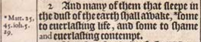 2 And many of them that sleepe in the dust of the earth shall awake, *some to euerlasting life, and some to shame and euerlasting contempt. [ *Matt. 25, 45. ioh.5. 29. ]
