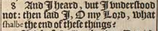8 Und ich hörte , aber ich verstand nicht: Dann sagte ich “Oh mein Herr, was wird das Ende dieser Dinge sein?”
