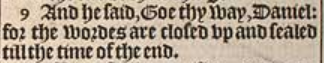 9 And he said, Goe thy way, Daniel: for the wordes are closed vp and sealed till the time of the end.