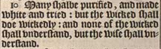 10 Many shalbe purified, and made white and tried: but the wicked shall doe wickedly: and none of the wicked shall vnderstand, but the wise shall vnderstand.