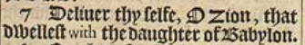 7 Deliuer thy selfe, O Zion, that dwellest with the daughter of Babylon.