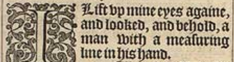 1 I lift vp mine eyes againe, and looked, and behold, a man with a measuring line in his hand.