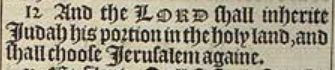 12 And the LORD shall inherite Iudah his portion in the holy land, and shall choose Ierusalem againe.