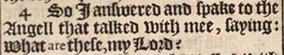4 So I answered and spake to the Angell that talked with mee, saying: What are these, my Lord?