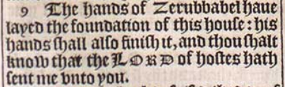 9 The hands of Zerubbabel haue layed the foundation of this house: his hands shall also finish it, and thou shalt know that the LORD of hostes hath sent me vnto you.