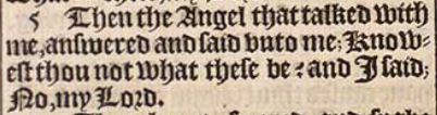 5 Then the Angel that talked with me, answered and said vnto me; Knowest thou not what these be? and I said; No, my Lord.