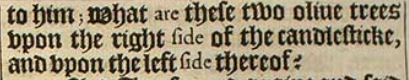11 ¶ Then answered I, and said vnto him; What are these two oliue trees vpon the right side of the candlesticke, and vpon the left side thereof?