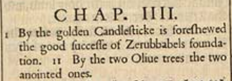 1 By the golden Candlesticke is foreshewed the good successe of Zerubbabels foundation. 11 By the two Oliue trees the two anointed ones.