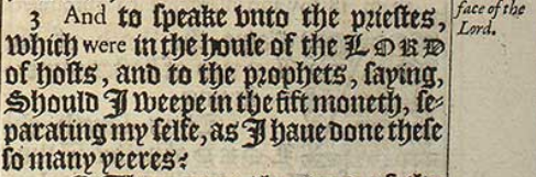 3 And to speake vnto the priestes, which were in the house of the LORD of hosts, and to the prophets, saying, Should I weepe in the fift moneth, separating my selfe, as I haue done these so many yeeres?