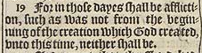 19 For in those dayes shall be affliction, such as was not from the beginning of the creation which God created, vnto this time, neither shall be.