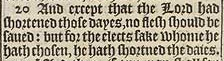20 And except that the Lord had shortened those dayes, no flesh should be saued: but for the elects sake whome he hath chosen, he hath shortned the daies.