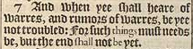 7 And when yee shall heare of warres, and rumors of warres, be yee not troubled: For such things must needs be, but the end shall not be yet.