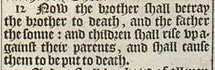 12 Now the brother shall betray the brother to death, and the father the sonne: and children shall rise vp against their parents, and shall cause them to be put to death.