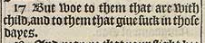 17 But woe to them that are with child, and to them that giue suck in those dayes.