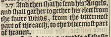 27 And then shal he send his Angels, and shall gather together his elect from the foure winds, from the vttermost part of the earth, to the vttermost part of heauen.