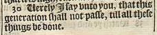 30 Uerely I say vnto you, that this generation shall not passe, till all these things be done.