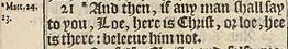 21 *And then, if any man shall say to you, Loe, here is Christ, or loe, hee is there: beleeue him not. [*Matt.24. 23.]