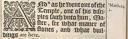 1 And *as he went out of the Temple, one of his disciples saith vnto him, Master, see what maner of stones, and what buildings are here. [*Matth.24. 1.]