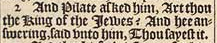2 And Pilate asked him, Art thou the King of the Iewes? And hee answering, said vnto him, Thou sayest it.