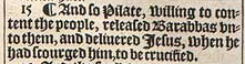 15 ¶ And so Pilate, willing to content the people, released Barabbas vnto them, and deliuered Iesus, when he had scourged him, to be crucified.