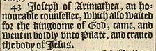43 Ioseph of Arimathea, an honourable counseller, which also waited for the kingdome of God, came, and went in boldly vnto Pilate, and craued the body of Iesus.
