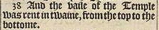 38 And the vaile of the Temple was rent in twaine, from the top to the bottome.