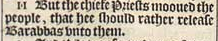11 But the chiefe Priests mooued the people, that hee should rather release Barabbas vnto them.