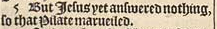 5 But Iesus yet answered nothing, so that Pilate marueiled.