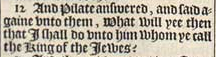 12 And Pilate answered, and said againe vnto them, What will yee then that I shall do vnto him whom ye call the King of the Iewes?