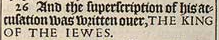 26 And the superscription of his accusation was written ouer, THE KING OF THE IEWES.
