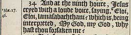 34 And at the ninth houre, Iesus cryed with a loude voice, saying, *Eloi, Eloi, lamasabachthani? which is, being interpreted, My God, my God, why hast thou forsaken me?[*Mat.27. 46.]