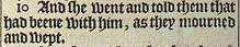10 And she went and told them that had beene with him, as they mourned and wept.