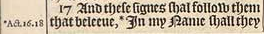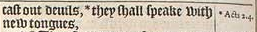 17 And these signes shal follow them that beleeue, *In my Name shall they cast out deuils, *they shall speake with new tongues,[*Act. 16. 18 , *Acts 2.4.]