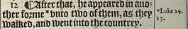 12 ¶ After that, he appeared in another forme *vnto two of them, as they walked, and went into the countrey.[*Luke 24. 13.]