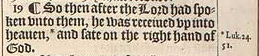 19 ¶ So then after the Lord had spoken vnto them, he was receiued vp into heauen, *and sate on the right hand of God.[*Luk. 24. 51.]