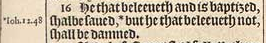 16 He that beleeueth and is baptized, shalbe saued, *but he that beleeueth not, shall be damned.[*Ioh.12.48]