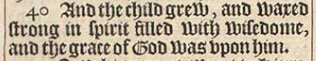 40 And the child grew, and waxed strong in spirit filled with wisedome, and the grace of God was vpon him.