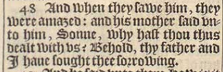48 And when they sawe him, they were amazed: and his mother said vnto him, Sonne, why hast thou thus dealt with vs? Behold, thy father and I haue sought thee sorrowing.