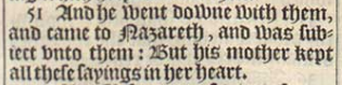 51 And he went downe with them, and came to Nazareth, and was subiect vnto them: But his mother kept all these sayings in her heart.