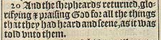 20 And the shepheards returned, glorifying & praising God for all the things that they had heard and seene, as it was told vnto them.