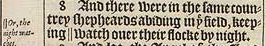 8 And there were in the same countrey shepheards abiding in þe field, keeping || watch ouer their flocke by night.[|| Or, the night watches.]